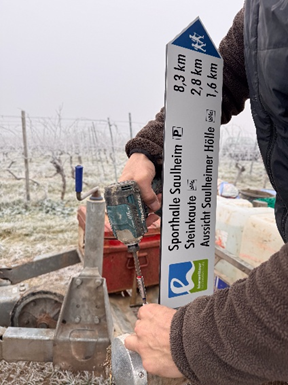 Sie fallen auf, viele Wanderfreunde haben sie schon gesichtet und in Social Media kommentiert: die neuen Wanderwegweiser am Wöllsteiner Wasserturm oder in der Saulheimer Mühlbachaue. Aber ein Schild macht noch keine Hiwweltour, stellt Silke Guttandin, Projektleiterin Wandern bei der Rheinhessen-Touristik, klar. Sie erläutert: „Mit der Umsetzung der neuen Touren wurde bereits begonnen. Den Auftakt macht die Installation der Beschilderung entlang der fünf Rundtouren. In den kommenden drei Monaten werden die einzelnen Hiwweltouren schrittweise fertiggestellt. Aber erst mit der Zertifizierung wird aus dem neuen Wanderweg eine zertifizierte Hiwweltour, dann können wir auch das Qualitätsversprechen einlösen, das wir allen Hiwweltouren mitgeben.“
